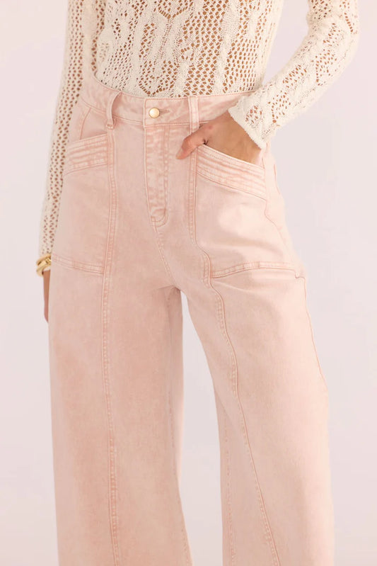 MINKPINK DAHLIA DENIM PANEL JEAN LIGHT PINK