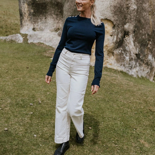MOKE - Nicki Women's Knit Crew Sweater - French Navy