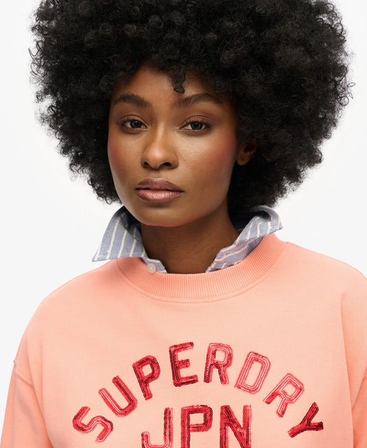 SUPERDRY EMBELLISHED VARSITY LOOSE CREW - Peach Amber