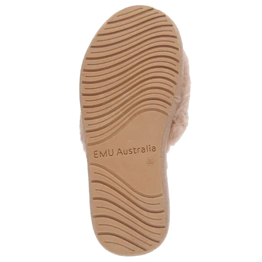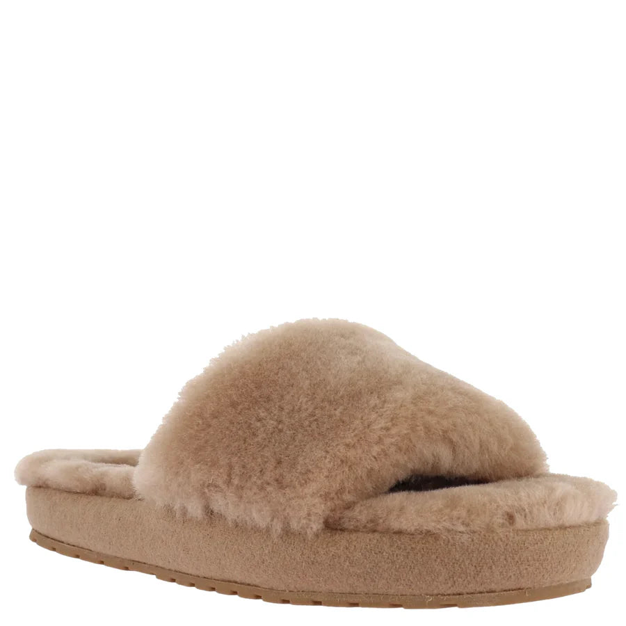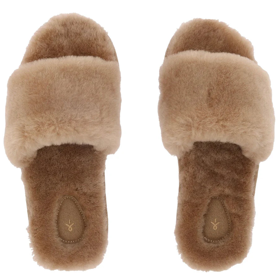 • Crafted with moisture-wicking and temperature-regulating Sheepskin for a plush and durable slipper slide.