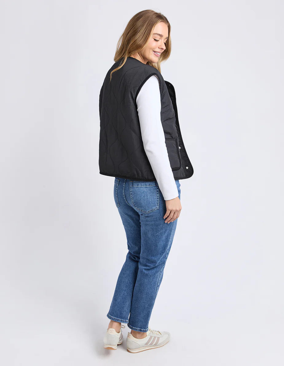 The Alberta Vest is the perfect layering piece for those in-between days. Featuring a classic quilted body with cosy sherpa lining, it adds warmth without restricting movement. Finished with a simple front snap opening, it’s easy to throw on over long sleeves, knits, or hoodies for an extra layer of comfort.