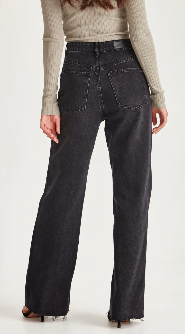 A classic 90's Wide Leg jean that fits slimmer to the waist & body with a relaxed leg and wider raw hem that can be cut to length.