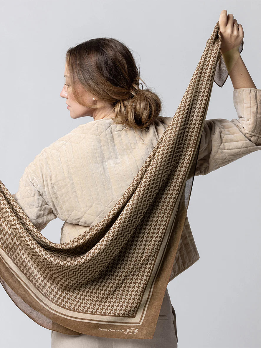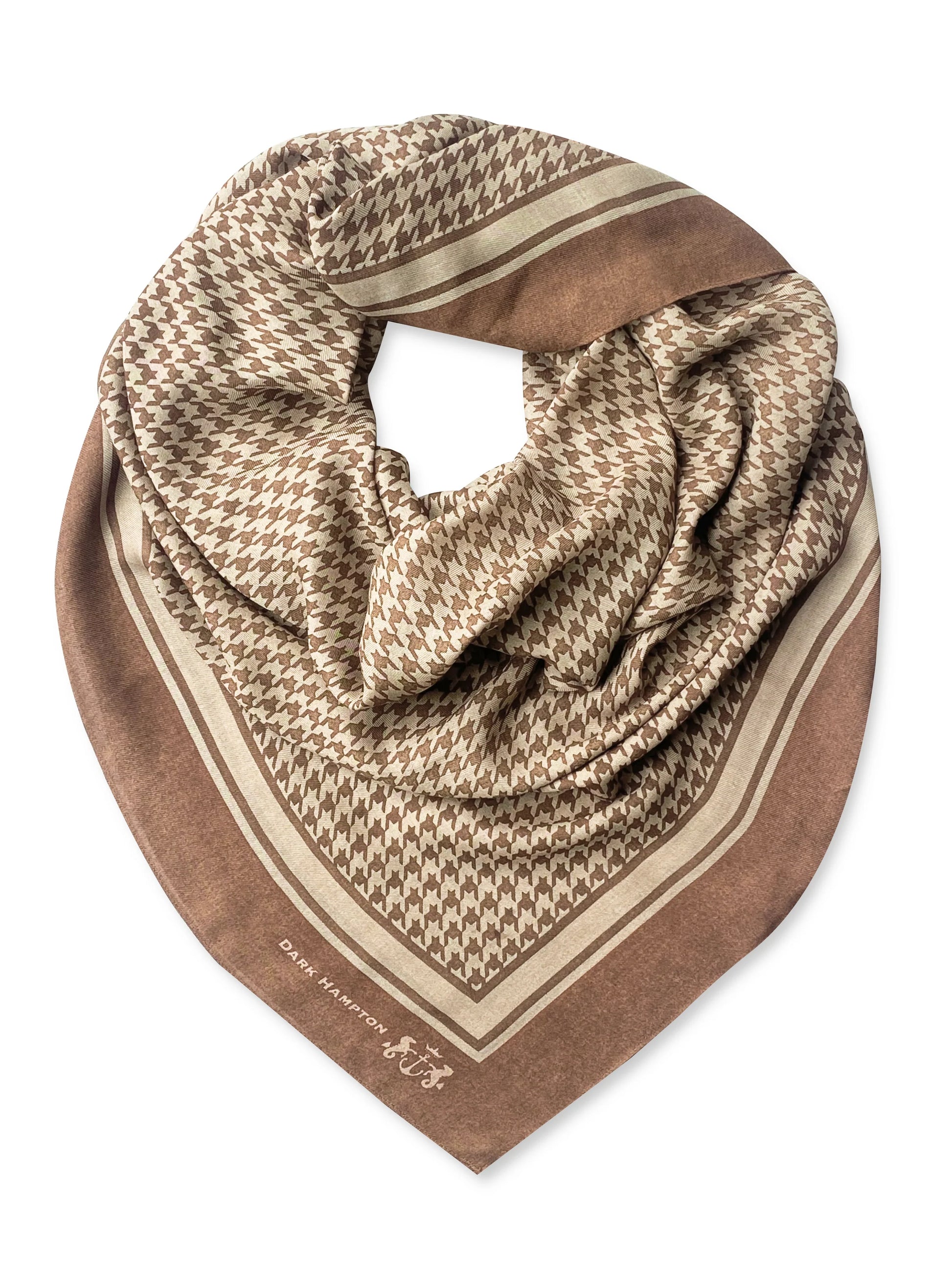 The Dennison features a classic brown and tan houndstooth design, offering timeless style with a modern edge. Lightweight, soft, and effortlessly versatile.