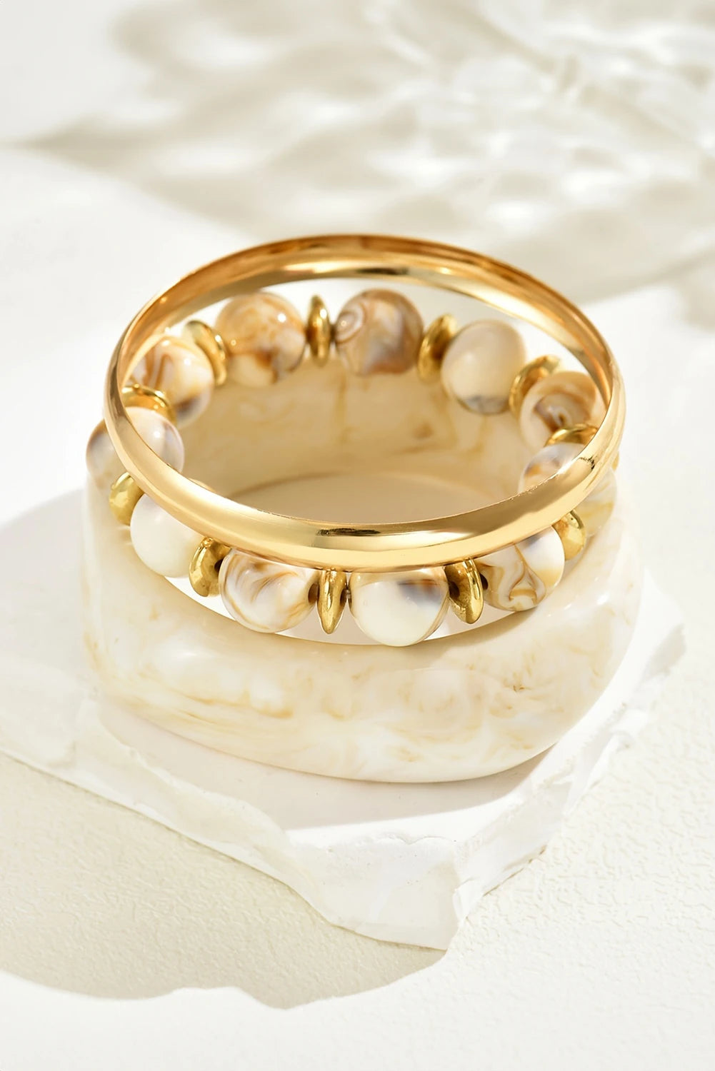 - 3pcs include a chunky bangle, a gold-plated bracelet, and a beading bracelet.