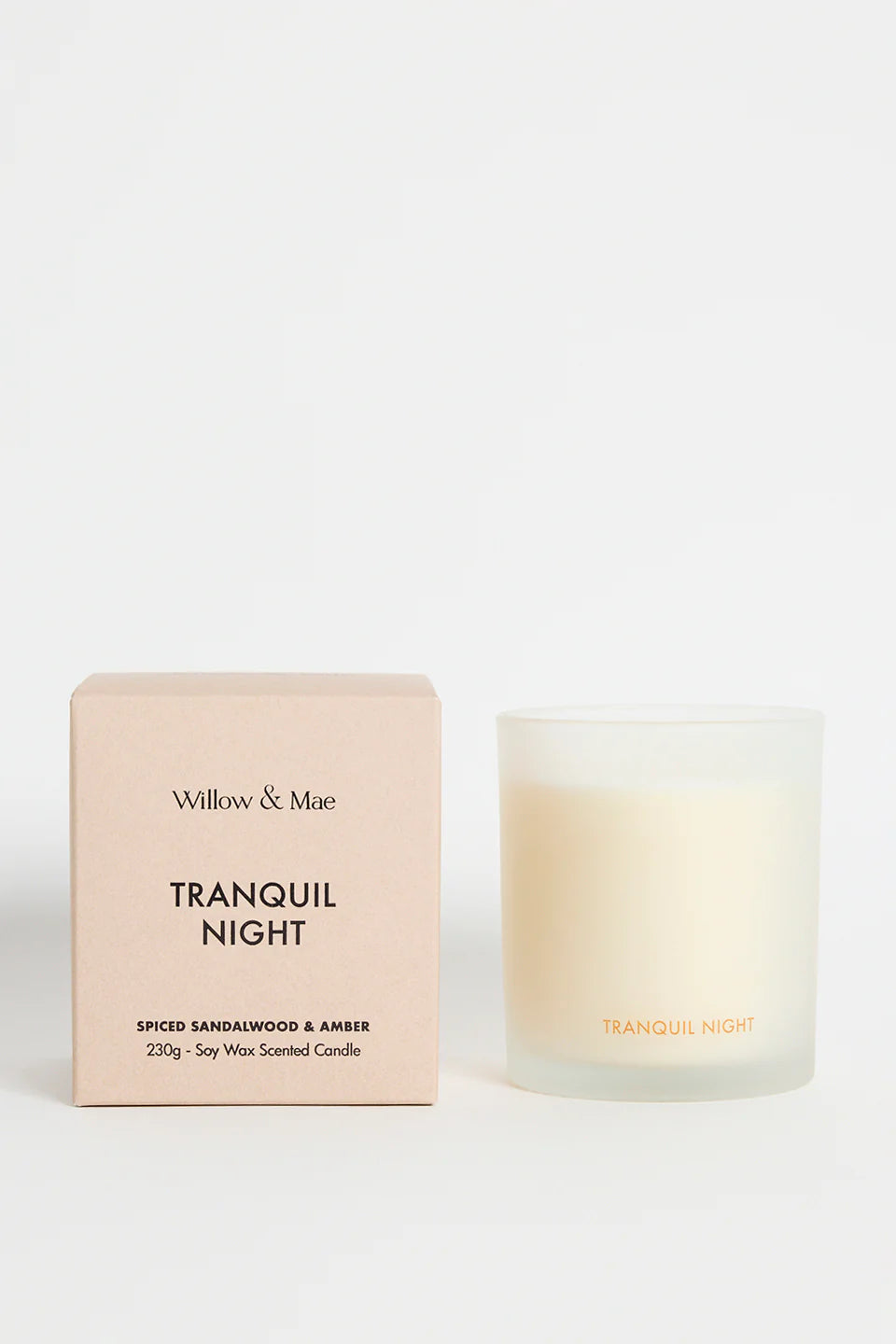 Our Tranquil Night Spiced Sandalwood + Amber scented candle is a seductive and sophisticated scent, notes of musk and amber mixed with notes of spicy cloves.